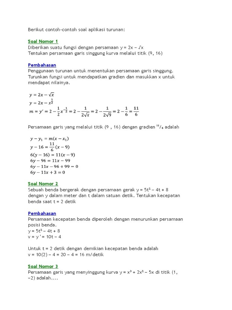 Matematikastudycenter.com_ contoh soal dan pembahasan aplikasi atau penerapan penggunaan turunan fungsi materi matematika kelas xi sma. Turunan ini terdapat dalam ilmu matematika maupun ilmu lainnya. Contoh soal aplikasi turunan diferensial dan jawaban pembahasan from soalkimia.com rangkuman materi turunan kelas xi/11. Matematikastudycenter.com_ contoh soal dan pembahasan aplikasi atau penerapan penggunaan turunan fungsi materi matematika kelas xi sma. Berikut ini adalah beberapa contoh soal mengenai turunan trigonometri.